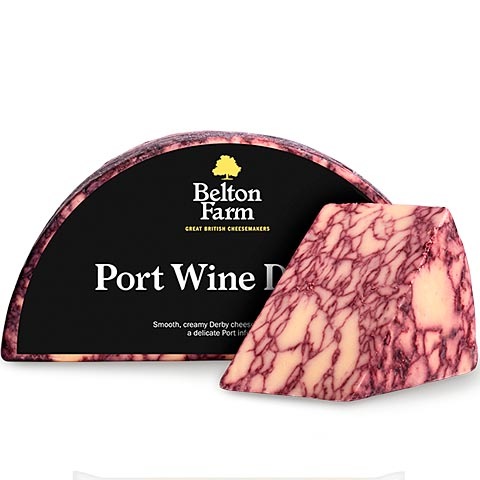 ポートワインが練りこまれた、印象的な見た目のイギリスチーズです。穏やかな風味のダービーチーズをベースにポートワインを練りこみました。チーズのミルキーな香りとワインのフルーティな香りが混ざり合い、とっても深みのある味わいです。ポートワインは、独特の甘みとコクのあるポルトガル産のワイン。イギリスではチーズに合わせて楽しむことが根付いています。なかでも、スティルトンとポートワインは定番の組み合せです。