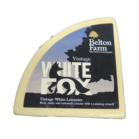 イギリスの伝統的なチーズの一つ「ホワイトレスター」を長期熟成させたオリジナルチーズです。ベルトンファーム社の代表作レッドフォックスの無着色版。オレンジ色のレッドフォックスに対し、ミルク本来のナチュラルなアイボリー色をしています。ホロホロと崩れやすく、くちどけの良い食感は健在。熟成によるフルーティな香りと深みのあるコクと濃厚な旨みが楽しめます。